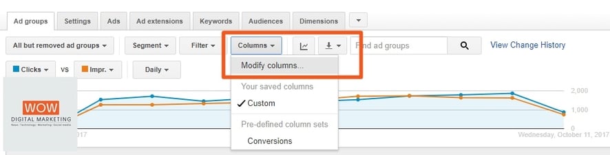 เราสามารถดู Search Impressions Share ได้ทั้งในระดับ Campaign, Ads Group และ Keywords ได้เลย ปกติแล้วค่า Default จะไม่แสดง Search Impressions Share เราสามารถเลือกได้ตรงแท็บ Column > Modify Column ค้นหาคำว่า Search Impressions Share เพียงเท่านี้ก็จะแสดงให้เห็นแล้วค่า คีย์เวิร์ดของเราเมื่อเทียบกับคู่แข่งแล้ว มีประสิทธิภาพมากเพียงใด